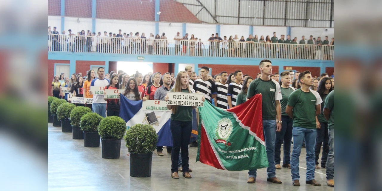 Desfilaram pelo ginásio atletas do Colégio Estadual de Educação Profissional Agrícola Getúlio Vargas, Colégio Estadual Amadeu Mário Margraf, Colégio Estadual Dom Alberto Gonçalves, Colégio Estadual São Judas Tadeu, Colégio Realeza, Colégio Sagrada Família, Escola Estadual do Campo Bom Jesus do Monte, Escola Estadual do Campo Flávio Santos, Escola Estadual do Campo de Guarauninha, Escola Estadual do Campo João Sidorko, Escola Estadual do Campo Professor Leonardo Salata, Escola Estadual do Campo de Quero-Quero, além dos convidados especial de São João do Triunfo, do Colégio Estadual do Campo Vila Palmira.