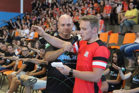 Logo após, a atleta de judô do Colégio Sagrada Família, Fernanda Brustolin Rigoni, atual primeira colocada no ranking estadual de sua modalidade, conduziu o fogo olímpico ao redor da quadra do ginásio. Na sequência Raisson Czelusniak, também atleta de judô do Colégio Sagrada Família, proferiu o juramento do atleta, junto com os demais competidores.