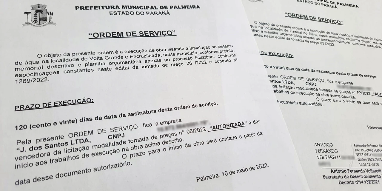 COM ASSESSORIAS - O Município de Palmeira, através da Secretaria Municipal de Desenvolvimento Rural, assinou as ordens de serviços que autorizam a execução das obras de instalação dos sistemas de abastecimento de água nas localidades de Faxinal dos Silva e de Volta Grande e Encruzilhada.