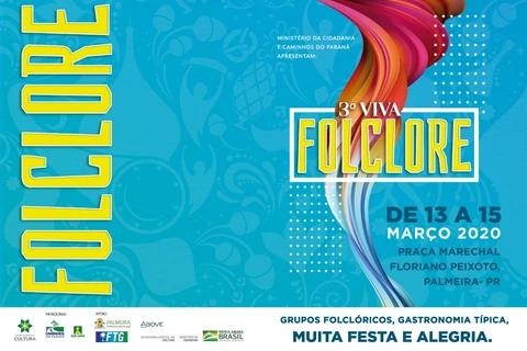 IMPRENSA/Palmeira - A 3ª edição do Viva o Folclore promete movimentar o cenário cultural de Palmeira a partir da próxima quinta-feira (12), na Praça Marechal Floriano Peixoto, tornando a Cidade Clima a capital paranaense do folclore. Na programação do evento, que se estende até domingo (15), apresentações de grupos folclóricos, gastronomia típica, muita festa e alegria.