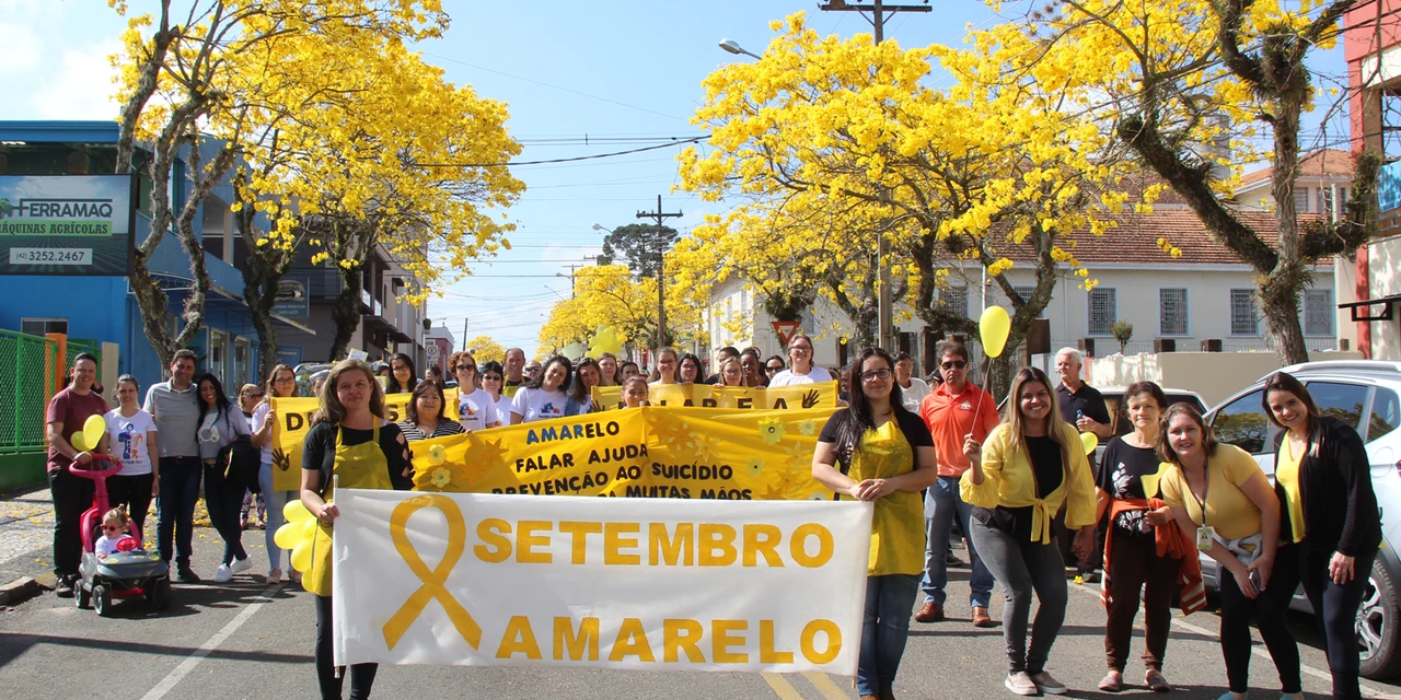 Estudantes, profissionais da saúde, servidores municipais, usuários das Estratégias de Saúde da Família (ESFs) e população em geral participaram juntos da caminhada, levando faixas, cartazes e bexigas, destacando o amarelo, cor símbolo da campanha de conscientização.