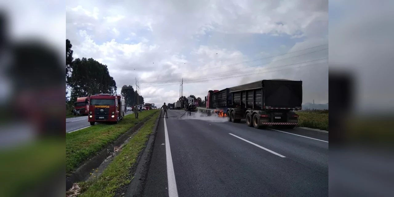 Um caminhão pegou fogo nos pneus na BR-376 no município Palmeira, nos Campos Gerais do Paraná, na manhã desta quarta-feira (29). Até 12h, segundo a Polícia Rodoviária Federal (PRF), o atendimento ao veículo causava filas de cerca de 15 quilômetros no sentido Curitiba.