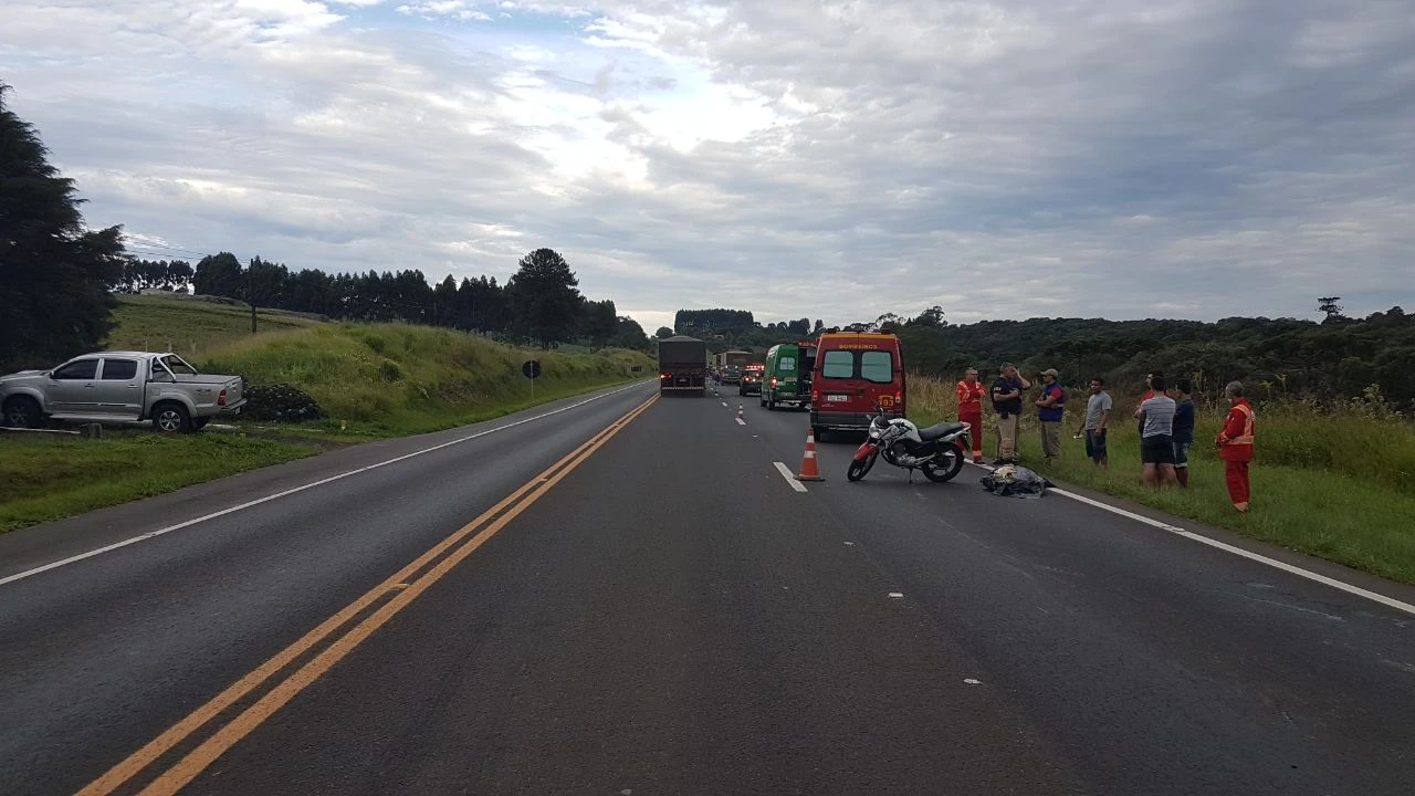 REDAÇÃO/Correio dos Campos - Uma colisão traseira registrada pela Polícia Rodoviária Federal no final da tarde desta segunda-feira (19), no quilômetro 166 da BR 277, em Palmeira, resultou na morte de um senhor de 52 anos de idade. A vítima fatal dirigia uma motocicleta que se chocou contra a traseira de um caminhão bitrem que seguia no sentido Curitiba.