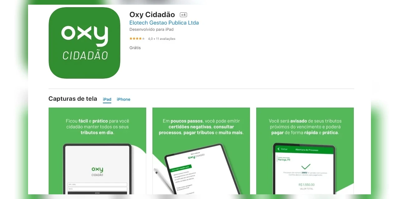 O aplicativo OXY Cidadão pode ser baixado gratuitamente e está disponível nas lojas