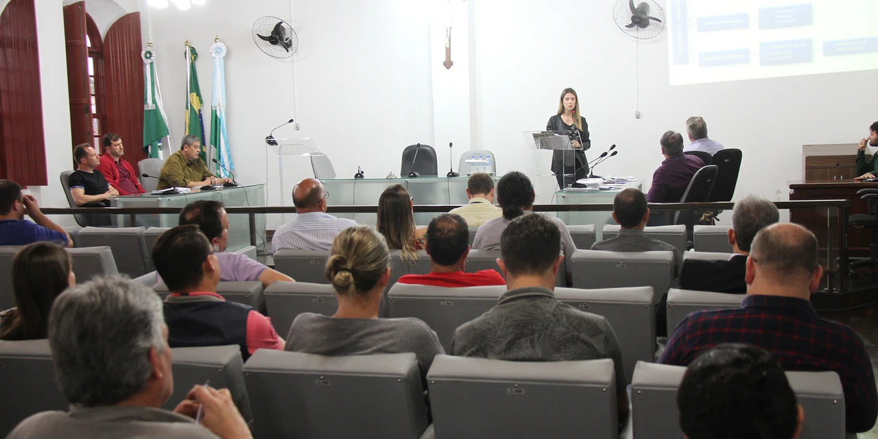 IMPRENSA/Palmeira - Munícipes, autoridades e representantes de instituições e entidades participaram da Audiência Pública realizada no final da tarde de quarta-feira (17), que apresentou e discutiu o Contrato de Programa a ser firmado entre o Município de Palmeira com a Companhia de Saneamento do Paraná (Sanepar). Aproximadamente 40 pessoas estiveram presentes na Sala de Sessões da Câmara Municipal de Vereadores.