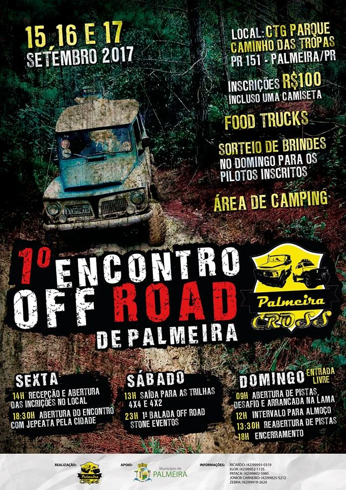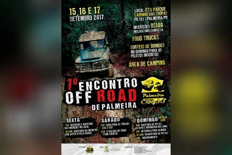 Os amantes de aventura de Palmeira e região já podem programar em sua agenda a 1ª edição do Encontro Off Road, que acontece na sexta-feira (15), sábado (16) e domingo (17), no Parque de Exposições Caminho das Tropas. O evento é promovido pelo Palmeira Cross, com o apoio da Prefeitura Municipal.