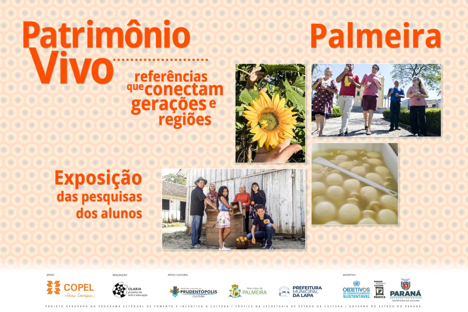 COM ASSESSORIAS - A riqueza e a diversidade da cultura popular deram origem ao projeto Patrimônio Vivo, que tem sua fase final em abril, levando atividades em diversas escolas e uma exposição na semana de aniversário de Palmeira. A exposição é composta por 32 painéis com fotos e textos, retratando temas como música, gastronomia, dança, artesanato, artes plásticas, prédios históricos, recantos naturais, lendas e personagens locais, entre muitos outros.