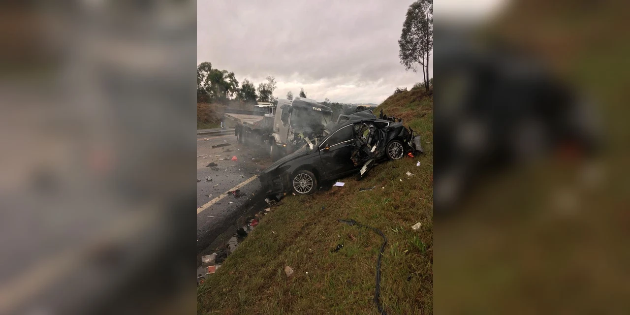 ATUALIZAÇÃO - O veículo Ford Fusion, envolvido no acidente, possui placas de Icaraíma (PR). As vitimas fatais foram reconhecidas como: Tomeya Sasahara, professor de artes marciais; a dentista Erica Borkot e a nutricionista Dina Taeko; todos eram ocupantes do Ford Fusion. Os ocupantes do caminhão não se feriram.