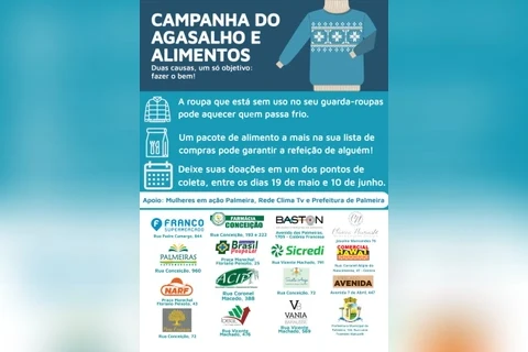 Para enfrentar estes problemas a Baston, em parceria com a Prefeitura de Palmeira e com o grupo Mulheres em Ação, realiza uma campanha de arrecadação de agasalhos e alimentos. Tudo o que for arrecadado será distribuído às famílias que necessitem destes apoios.