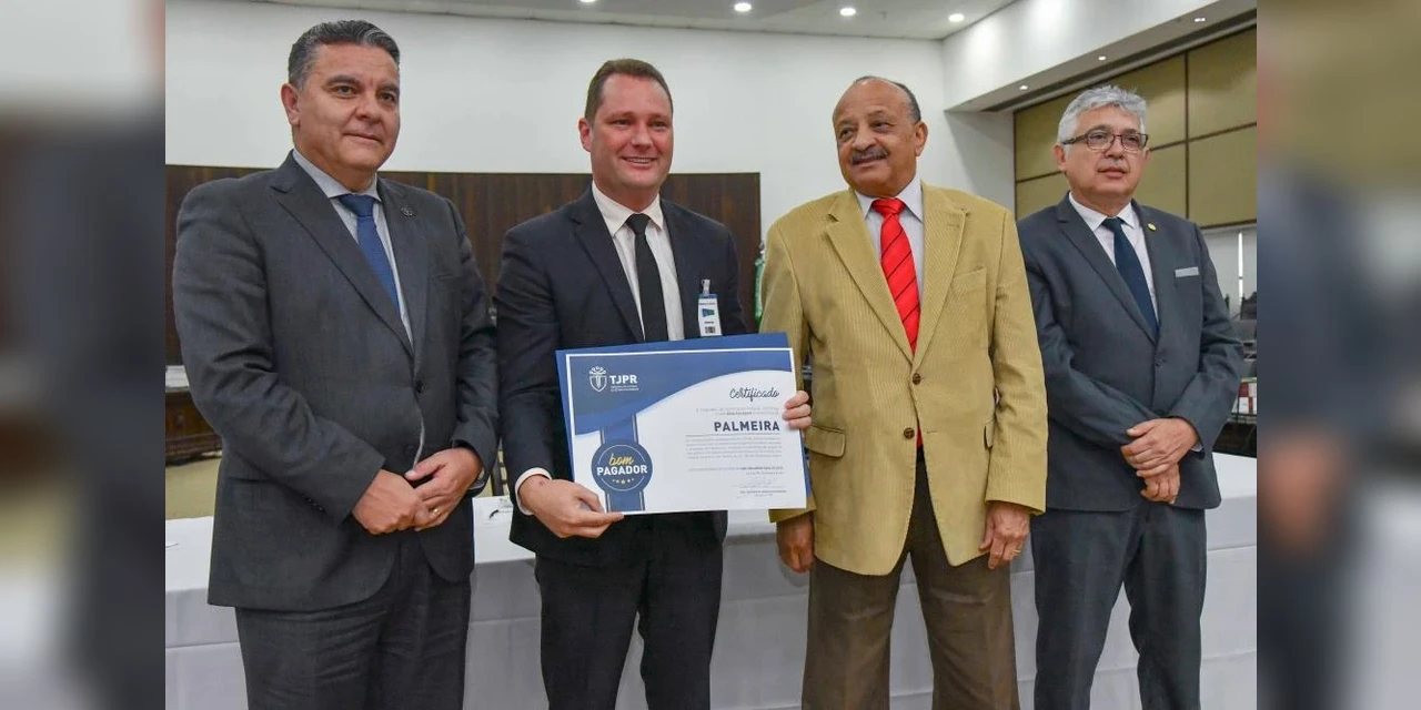 IMPRENS/Palmeira - O prefeito, Edir Havrechaki, esteve no Tribunal de Justiça do Paraná (TJPR), em Curitiba na sexta-feira (9) onde recebeu o "Selo Bom Pagador". O certificado reconhece a boa conduta de entes públicos que estão em dia com o pagamento dos precatórios e que, por cumprirem tal obrigação, honram o direito dos cidadãos.