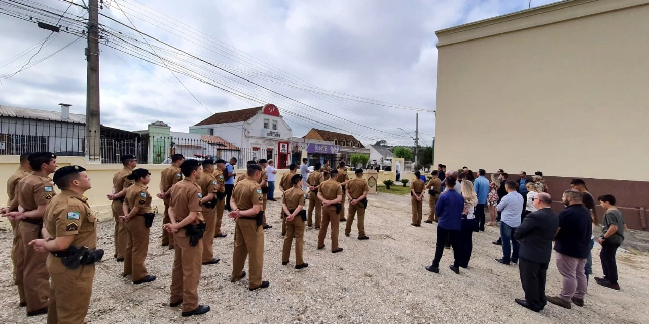 COM ASSESSORIAS - O prefeito Sérgio Belich e o vice-prefeito Major Schulli participaram da inauguração da nova sede da Polícia Militar de Palmeira, na manhã desta sexta-feira (29). O espaço, que anteriormente era ocupado pela Secretaria Municipal de Assistência Social, foi cedido pelo Município à PM, que agora conta com um local amplo e que proporciona melhores condições de trabalho.
