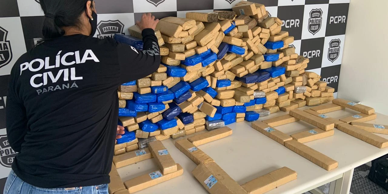 A Polícia Civil do Paraná (PCPR) apreendeu 208 quilos de maconha, no início da noite de segunda-feira (21), na Praça de Pedágio do município de Palmeira, região dos Campos Gerais. Um jovem, de 19 anos, foi preso em flagrante transportando a droga.