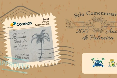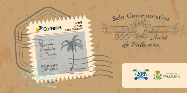 IMPRENSA/Palmeira - Nesta quinta-feira (1º), data em que é comemorado o Dia Nacional do Selo, a Prefeitura de Palmeira e a Empresa Brasileira de Correios e Telégrafos lançam o selo personalizado alusivo aos 200 anos do município. O evento acontece a partir das 19 horas, no salão da Secretaria de Assistência Social.