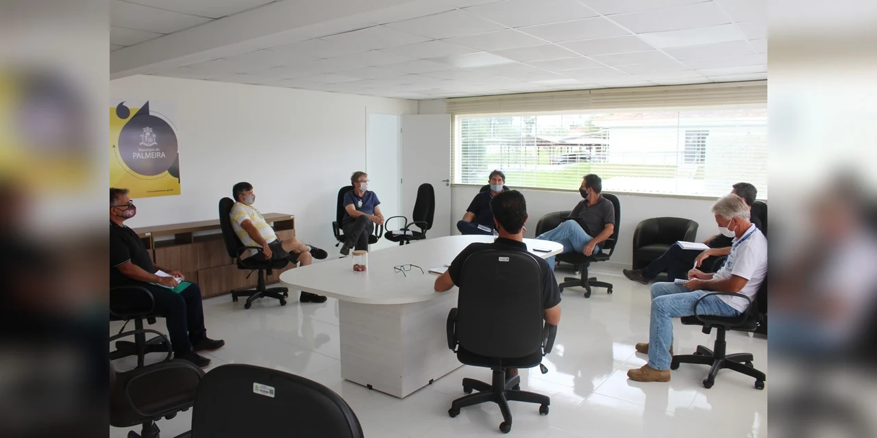 COM ASSESSORIAS - O prefeito Sérgio Belich, o vice-prefeito Major Schulli, e o secretário de Agricultura e Pecuária, Fernando Voltarelli, estiveram reunidos com a Central de Abastecimento do Paraná (Ceasa/PR), com o Instituto de Desenvolvimento Rural do Paraná (IDR), com a Associação de Produtores de Uva e com a Cooperativa de Agricultura Familiar de Palmeira (Cafpal) para discutir sobre a comercialização de produtos produzidos em Palmeira.