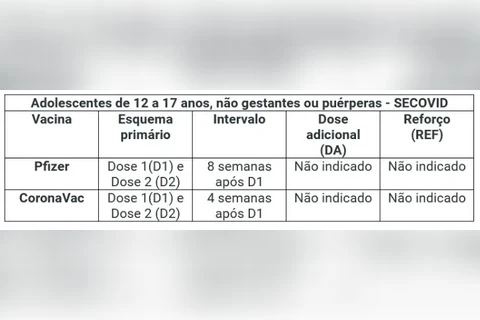 Abaixo, seguem os esquemas vacinais contra Covid-19 vigentes: