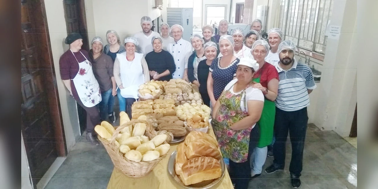 IMPRENSA/Palmeira - Cerca de 40 alunos estão realizando o curso de auxiliar de panificação, pães artesanais e confeitaria, na Colônia Witmarsum. A capacitação é oferecida pela Prefeitura de Palmeira, através da Secretaria de Indústria e Comércio, em parceria coma Câmara de Vereadores e o Serviço Nacional de Aprendizagem Industrial (Senai).