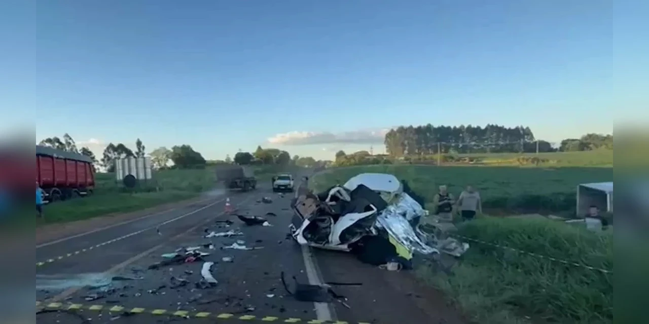 Um grave acidente resultou em quatro mortes na PR-182, em Realeza, na região sudoeste do Paraná. A colisão aconteceu no final da tarde deste domingo (10), em um trecho de pista simples, e envolveu um carro Nissan Versa e um caminhão. As quatro vítimas estavam no veículo de passeio.
