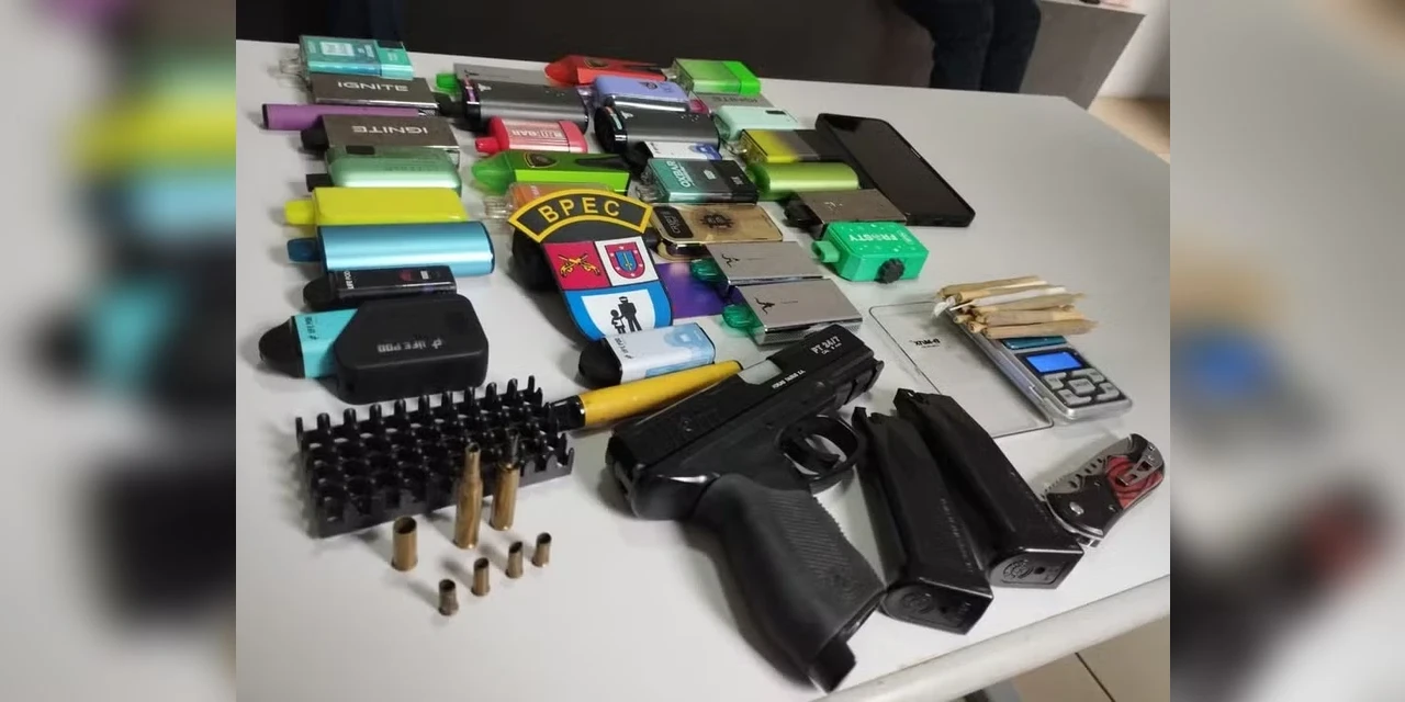 Depois, a PM fez buscas na casa do adolescente e localizou um simulacro modificado para uma arma de fogo, assim como munições de diversos calibres e mais de 20 cigarros eletrônicos. De acordo com o BPEC, ele confessou que realiza venda dos aparelhos.