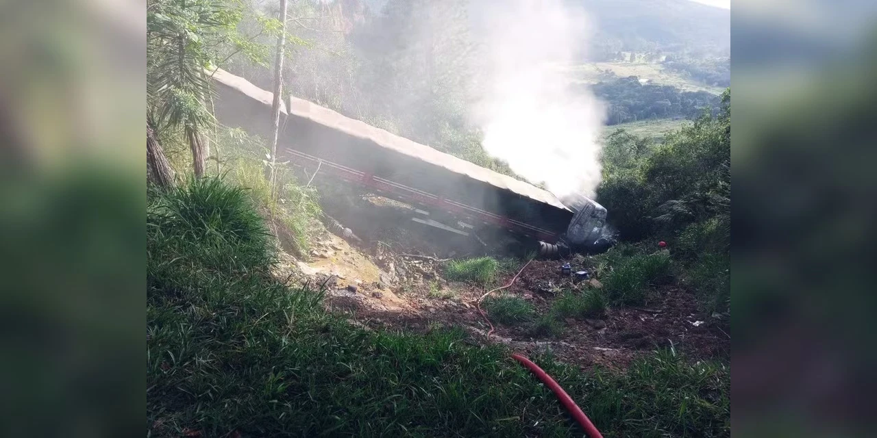 O Corpo de Bombeiros afirma que o motorista conseguiu sair do veículo antes do incêndio e foi atendido por uma equipe do Serviço de Atendimento Móvel de Urgência (Samu).