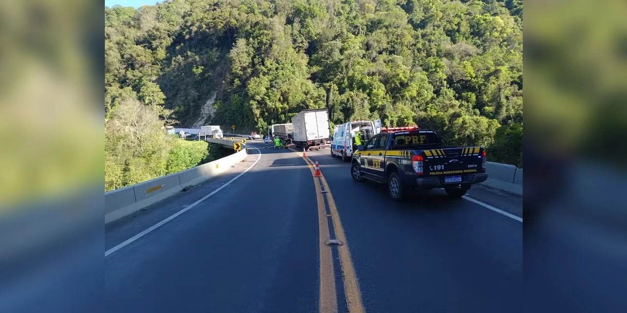 O acidente aconteceu por volta das 15h e até a chegada da Polícia Rodoviária Federal (PRF) a rodovia ficou totalmente interditada.