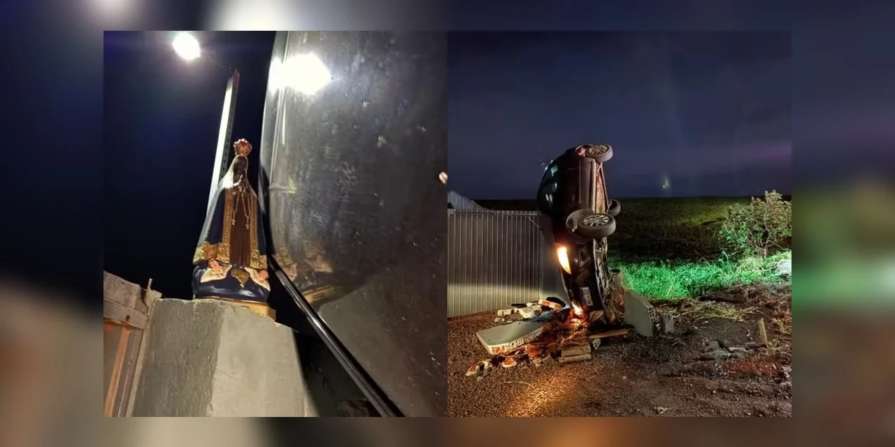 Uma vereadora de Formosa do Oeste, no oeste do Paraná, saiu ilesa após sofrer um acidente na madrugada de sábado (6). O carro que ela dirigia capotou e parou apoiado aos pés de uma imagem de Nossa Senhora Aparecida, instalada às margens da rodovia.