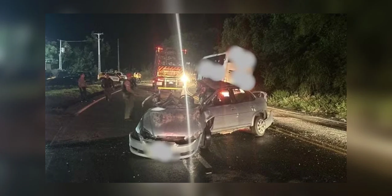 Um carro partiu ao meio após rodar na pista e ser atingido por um ônibus na noite deste domingo (7) na PR-160 em Telêmaco Borba, nos Campos Gerais do Paraná. As informações são da Polícia Rodoviária Estadual (PRE).