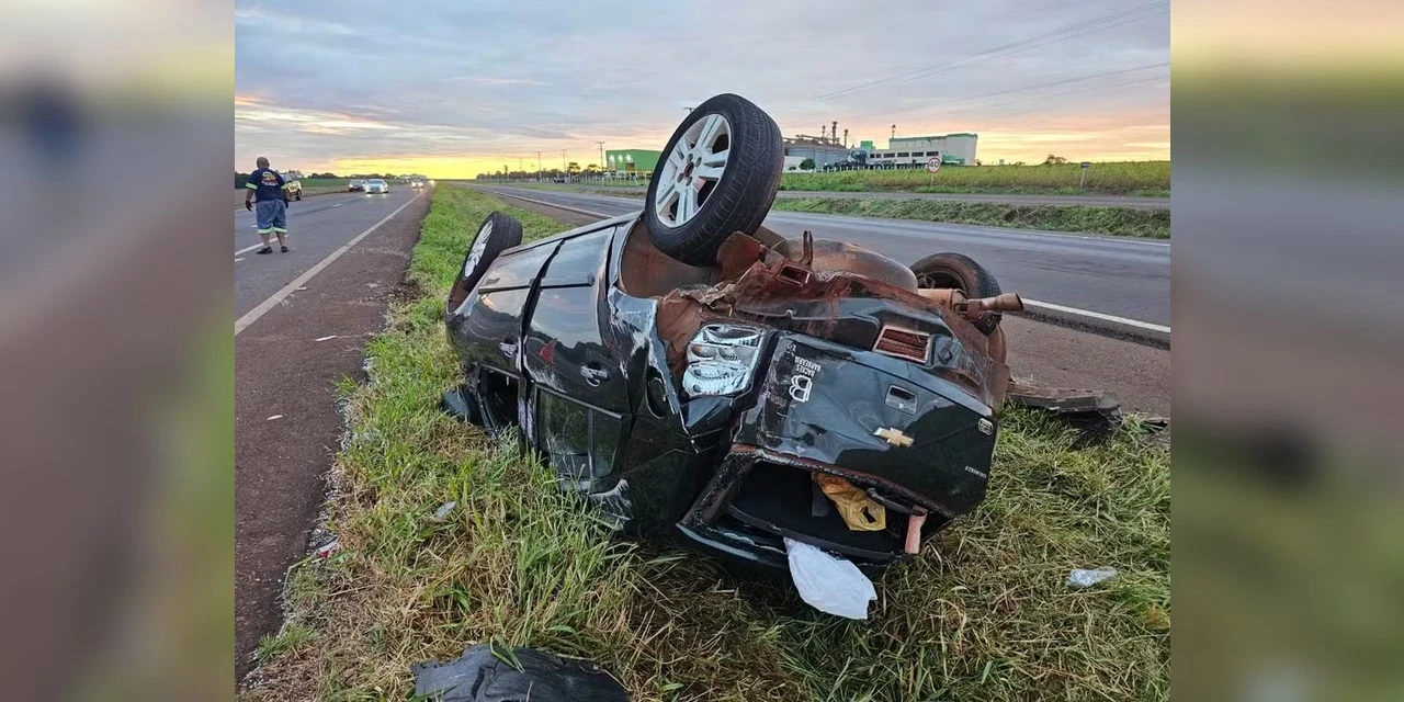 Cinco pessoas que estavam no carro que reduziu a velocidade para ver acidente em Toledo, no oeste do Paraná, e acabou sendo atingido na traseira e capotando, ficaram feridas, de acordo com a Polícia Rodoviária Federal (PRF). Eles foram levados para uma unidade de saúde e passam bem.