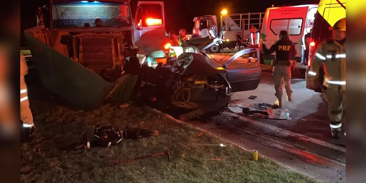Dois homens morreram em um grave acidente na BR-369, em Ibiporã, no norte do Paraná, na noite de sábado (10). De acordo com a Polícia Rodoviária Federal (PRF), as vítimas fatais estavam em um carro que cruzava a rodovia para acessar a cidade e foi atingido por um caminhão.