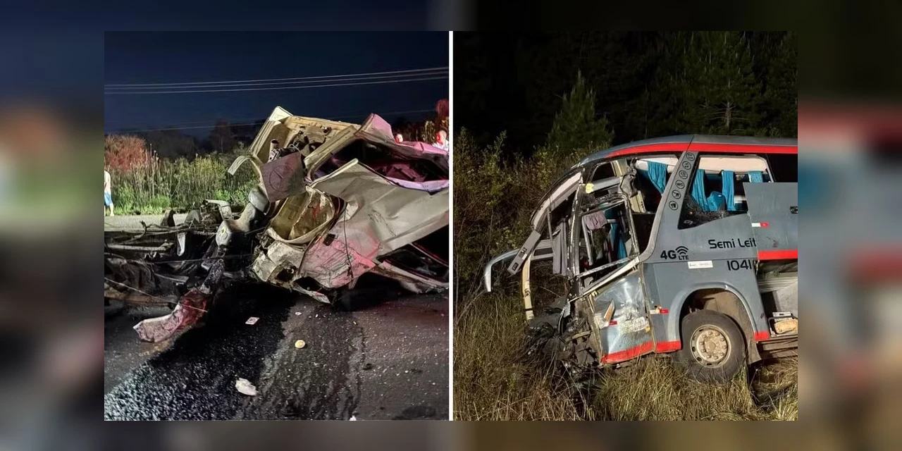 Duas pessoas morreram e outras 23 ficaram feridas em um acidente entre um ônibus fretado por uma família e um caminhão na noite de domingo (5) na PR-151, entre São Mateus do Sul (PR) e Três Barras (SC).