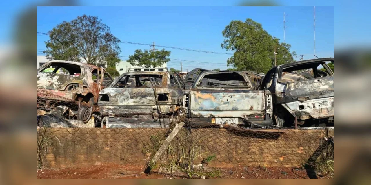 O pátio do Departamento Estadual de Trânsito (Detran) em Cascavel, no oeste do Paraná, foi atingido por um incêndio na madrugada desta terça-feira (25). Dezenas de carros que estavam no local foram danificados.