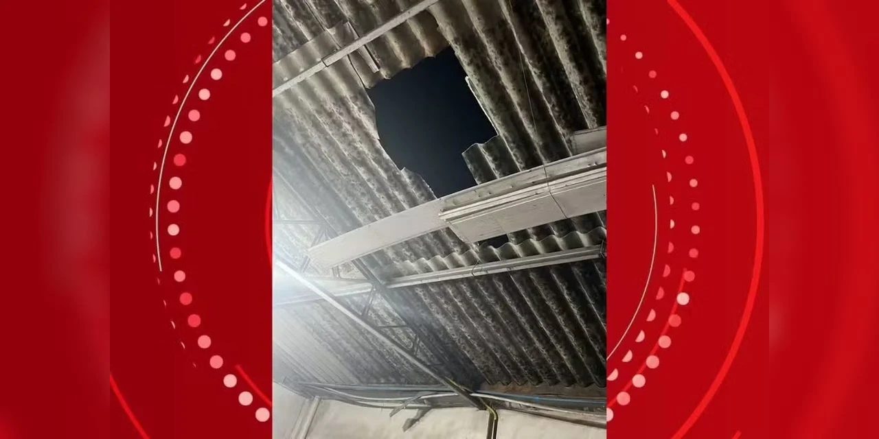 Segundo a PM, o proprietário da empresa foi informado sobre os danos no telhado e cadeado do estabelecimento.