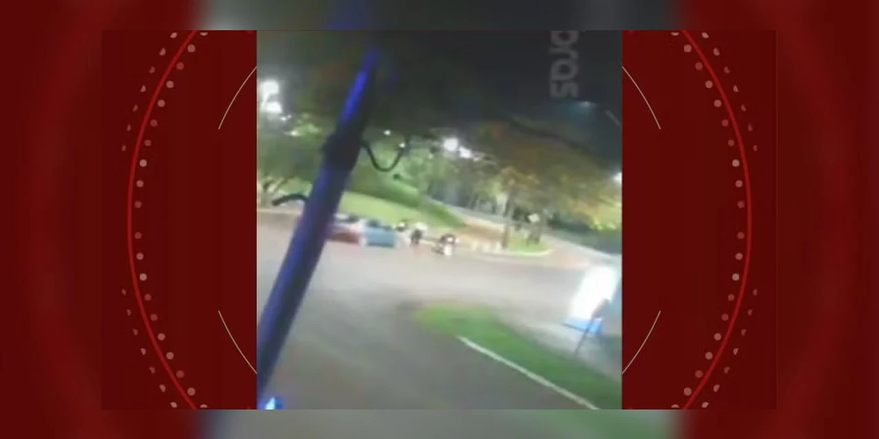 As imagens mostram que a vítima, que também tem 20 anos, estava parada em uma moto quando foi atingida pelo carro do suspeito. Um amigo dela, que estava ao lado, em outra moto, também foi atropelado.