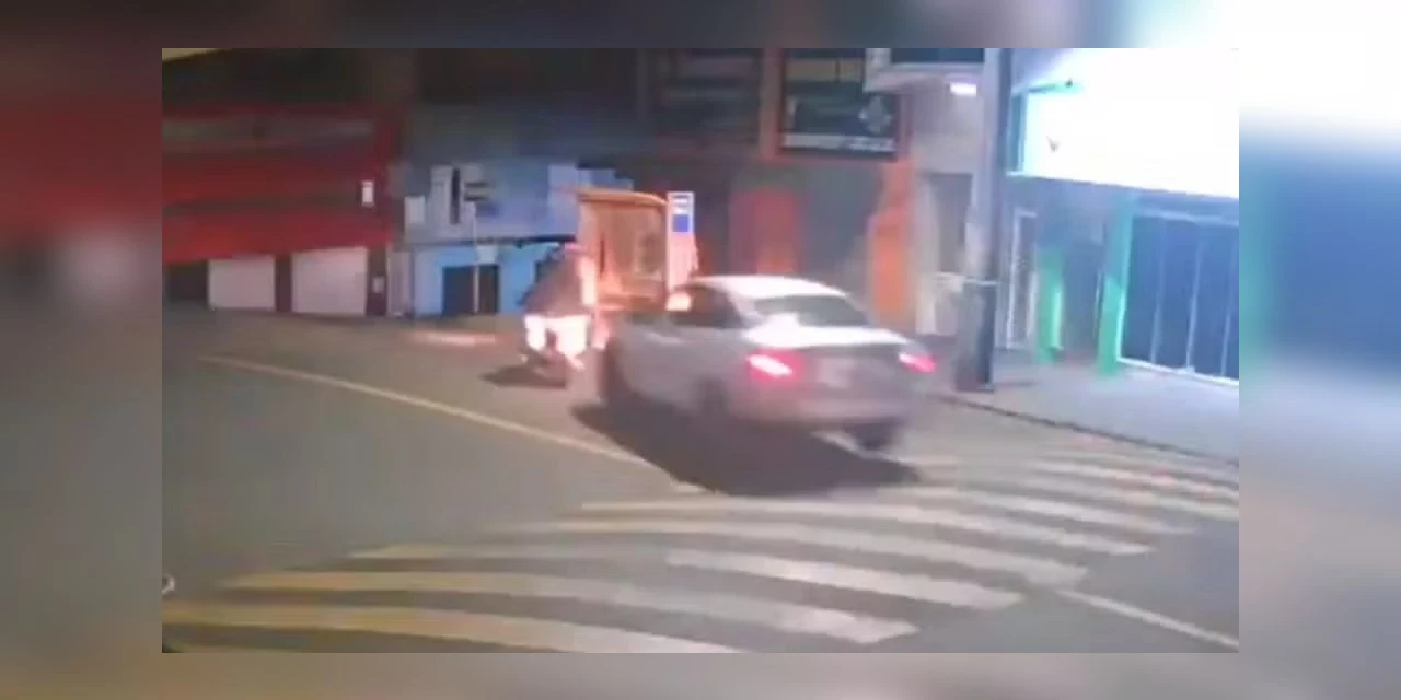 As imagens mostram que a moto estava sendo perseguida em alta velocidade pelo carro, até ser atingida pelo veículo. Com o impacto da batida, os motociclistas são arremessados à frente, e um deles chega a "voar" pelo ar. O carro para após subir na calçada e bater em um poste.