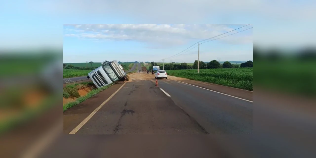 Conforme a polícia, a carga de areia caiu sobre a pista no sentido contrário. Por isso, uma das faixas da rodovia teve que ser interditada. Assim, a rodovia seguirá em meia-pista até a retirada do veículo e a limpeza da faixa interditada.