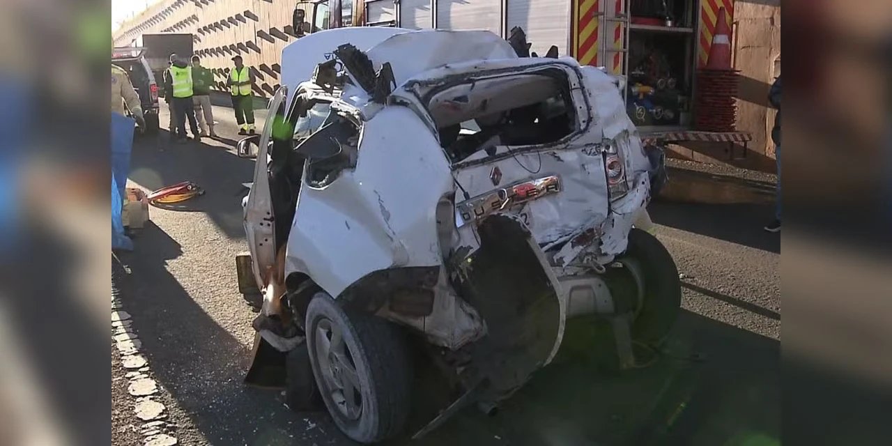 Em imagens feitas pela equipe da RPC, afiliada da TV Globo no Paraná, é possível ver que o carro ficou completamente amassado por conta da força da colisão na traseira.
