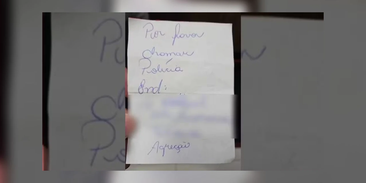 Junto com o pedido de socorro, a mulher anotou também o endereço da casa onde os dois moravam.