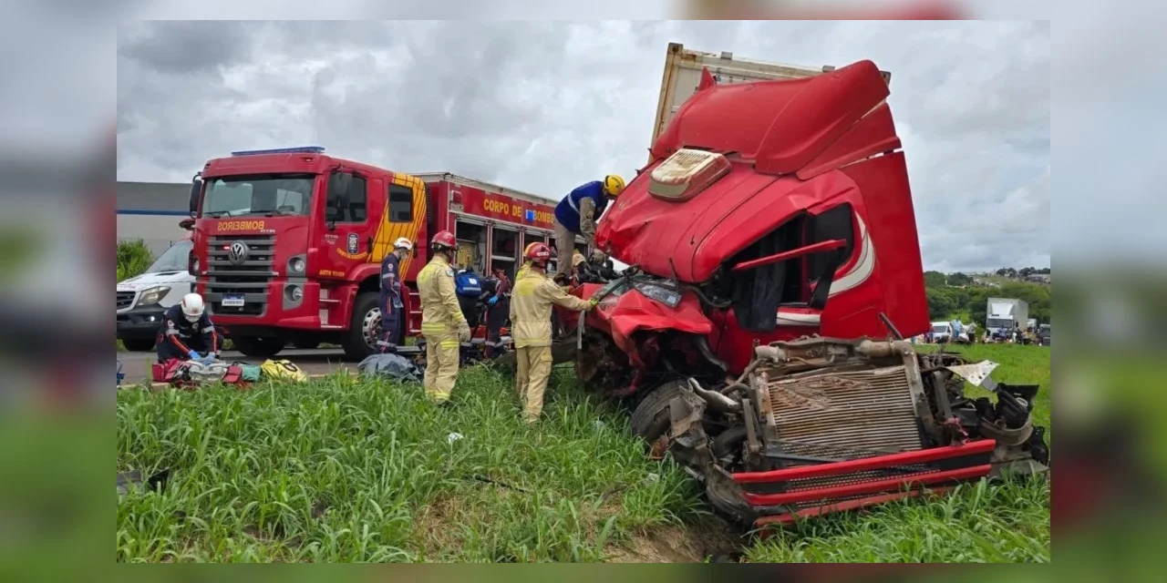 Ainda de acordo com a PRF, a vítima fatal era passageira deste último caminhão. Ela ficou presa nas ferragens e morreu antes que a equipe do Corpo de Bombeiros conseguisse retirá-la da cabine.