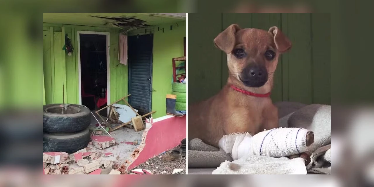 O impacto da batida quebrou a mureta de concreto e o forro de madeira da varanda, e destruiu a casinha da cachorrinha da família. Nina, como é chamada, foi atingida por destroços e ficou com ferimentos em uma das patinhas.