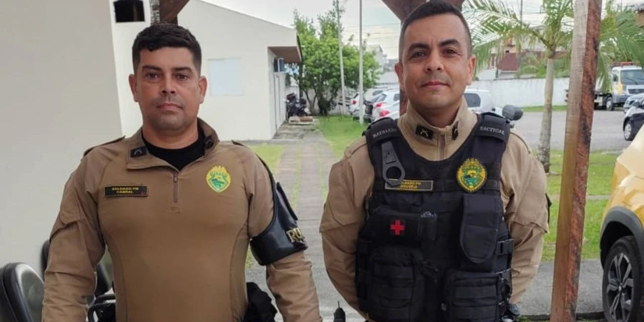Dois agentes da Polícia Militar do Paraná (PMPR) protagonizaram um ato heroico na zona rural de Guaratuba, nesta quarta-feira (14). Enquanto realizavam patrulhamento na localidade de Pedra Branca, os soldados Cabral e Gouveia, identificaram uma família em risco, durante uma ‘cabeça d’água’ no Rio São João. Pai, mãe e filho, lutavam para tentar sair da água, mas a correnteza impedia os turistas.