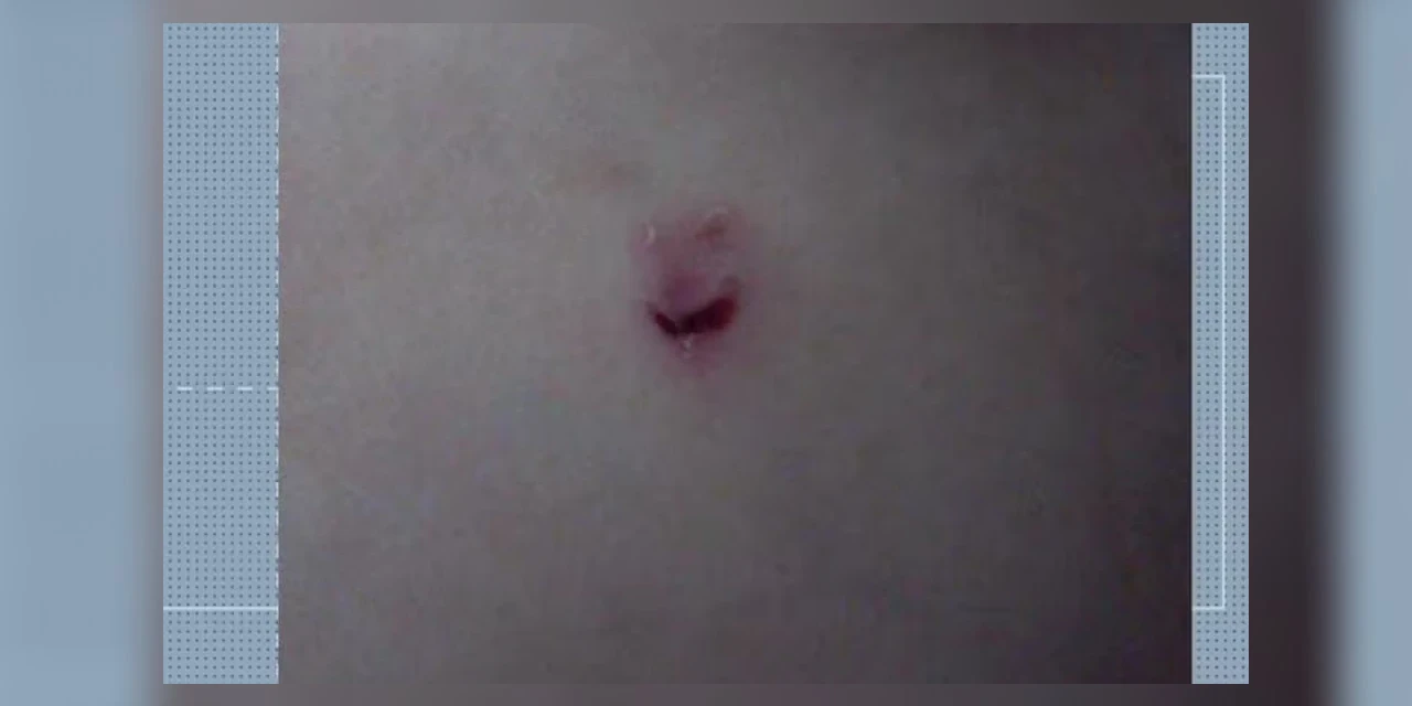 O pai da criança, no entanto, achou que o ferimento parecia ter sido feito com unha (veja foto abaixo). Ele procurou a direção da escola e, ao acessaram as câmeras do parquinho, não encontraram nenhuma queda. Mas ao verificar imagens de dentro da sala, perceberam atitudes suspeitas dela.