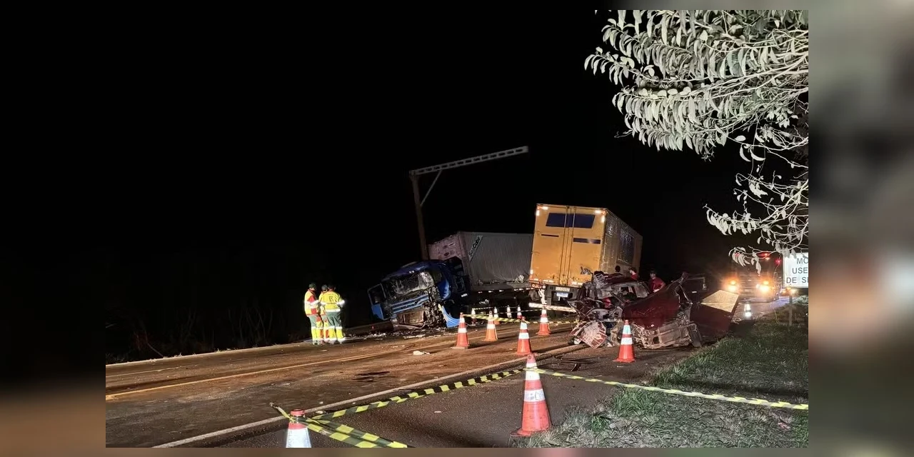 Um carro que trafegava no mesmo sentido e estava com seis ocupantes bateu na traseira do caminhão e, na sequência, outro caminhão que estava no sentido contrário bateu de frente com o veículo de carga parado.