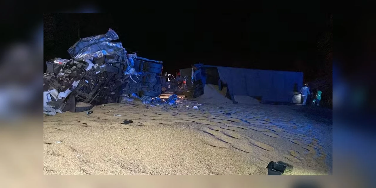 De acordo com a corporação, o semirreboque estava transportando soja no sentido Curitiba e tombou na pista após a batida, espalhando a carga pela estrada.