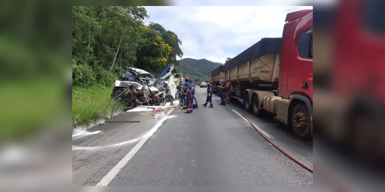 Um grave acidente envolvendo quatro caminhões resultou na morte de um dos motoristas, na BR-277, km 39, em Morretes, no início da tarde desta terça-feira (22). Devido ao acidente, o tráfego sentido Paranaguá foi totalmente interditado enquanto as equipes da Polícia Rodoviária Federal (PRF) atendiam a ocorrência.