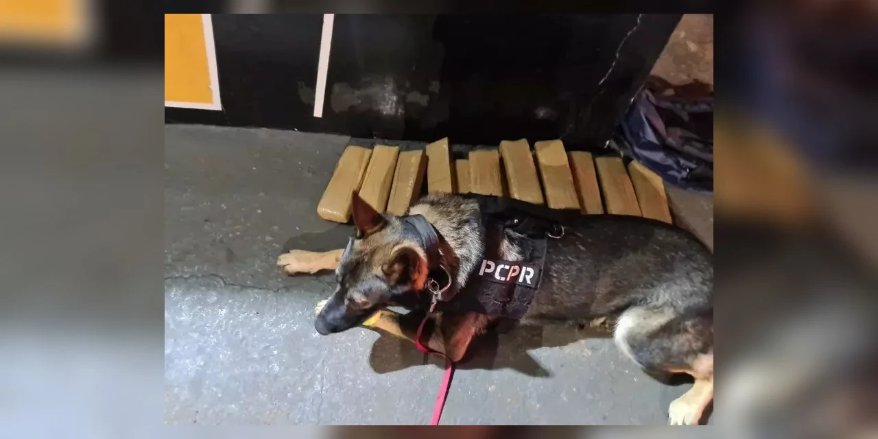 A Polícia Rodoviária Estadual (PRE) e policiais civis da Divisão Estadual de Narcóticos (Denarc) de Londrina e Maringá, em operação contra o tráfico de drogas, interceptou o ônibus em frente ao posto rodoviário. Niko, cão de detecção de drogas, apontou a mala com 11 kg de maconha.