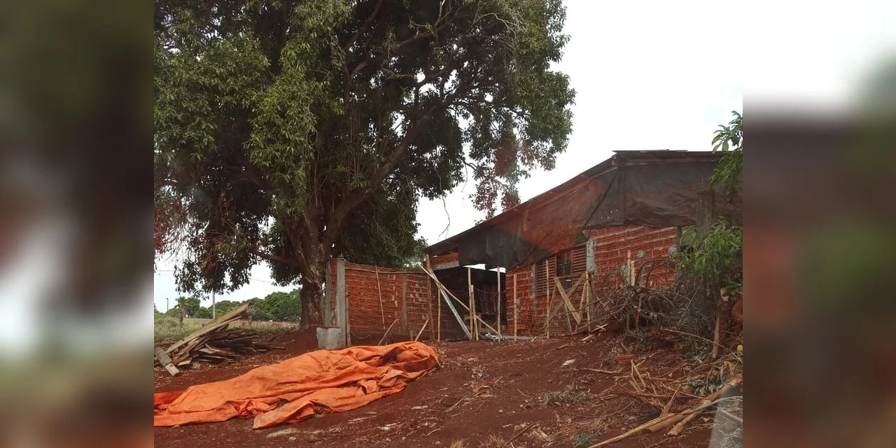 A mãe de Lucas contou que, antes da construção do telhado, a família improvisava a cobertura de um único cômodo com a lona, em dias de chuva.