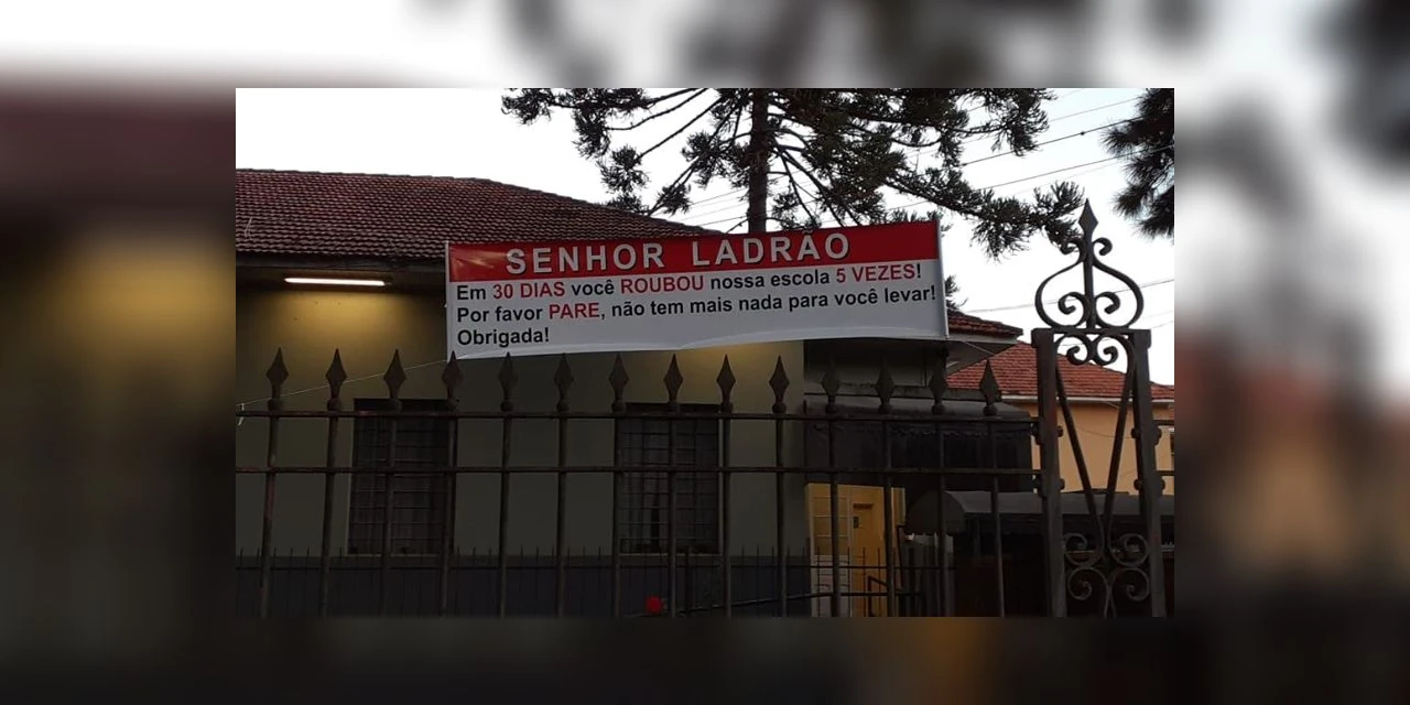 Foram cinco roubos no período de um mês, o que levou a direção do tradicional Colégio Estadual Doutor Xavier da Silva, que tem 116 anos, no bairro Rebouças, em Curitiba, a fazer uma faixa de apelo ao ‘senhor ladrão’. Em entrevista à Banda B, na manhã deste sábado (9), o membro da Associação de Pais e Mestres do colégio, Marlon Henrique Cavisqui, contou que nem tem mais o que se roubar na instituição.