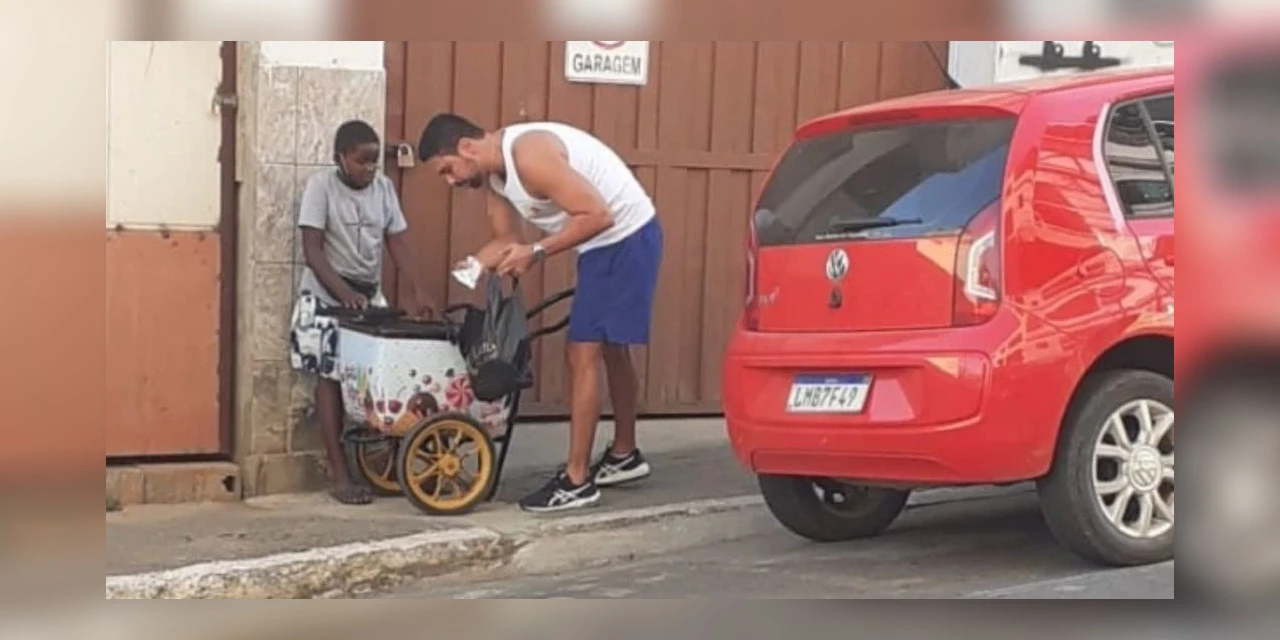 Ao ver que o sorveteiro passava apuros, o rapaz atravessou a rua e ajudou o menino a montar seu carrinho. Em seguida, outro desconhecido entrou em cena! Sem o carrinho para guardar os sorvetes, todos os seus picolés derreteriam e o jovem teria um super prejuízo, então Kaio Trindade resolveu comprar todo o estoque do garoto!
