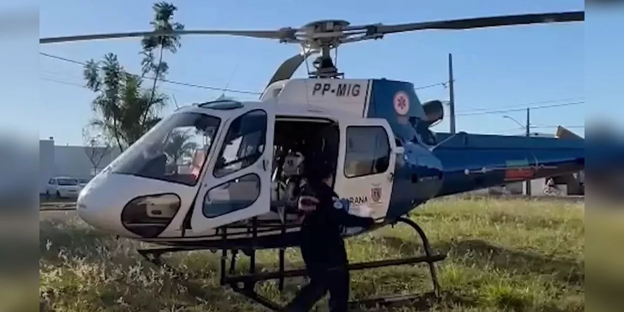 Um bebê de 10 meses foi socorrido de helicóptero na tarde desta quinta-feira (03), após sofrer uma queda da cama, em Marialva.
