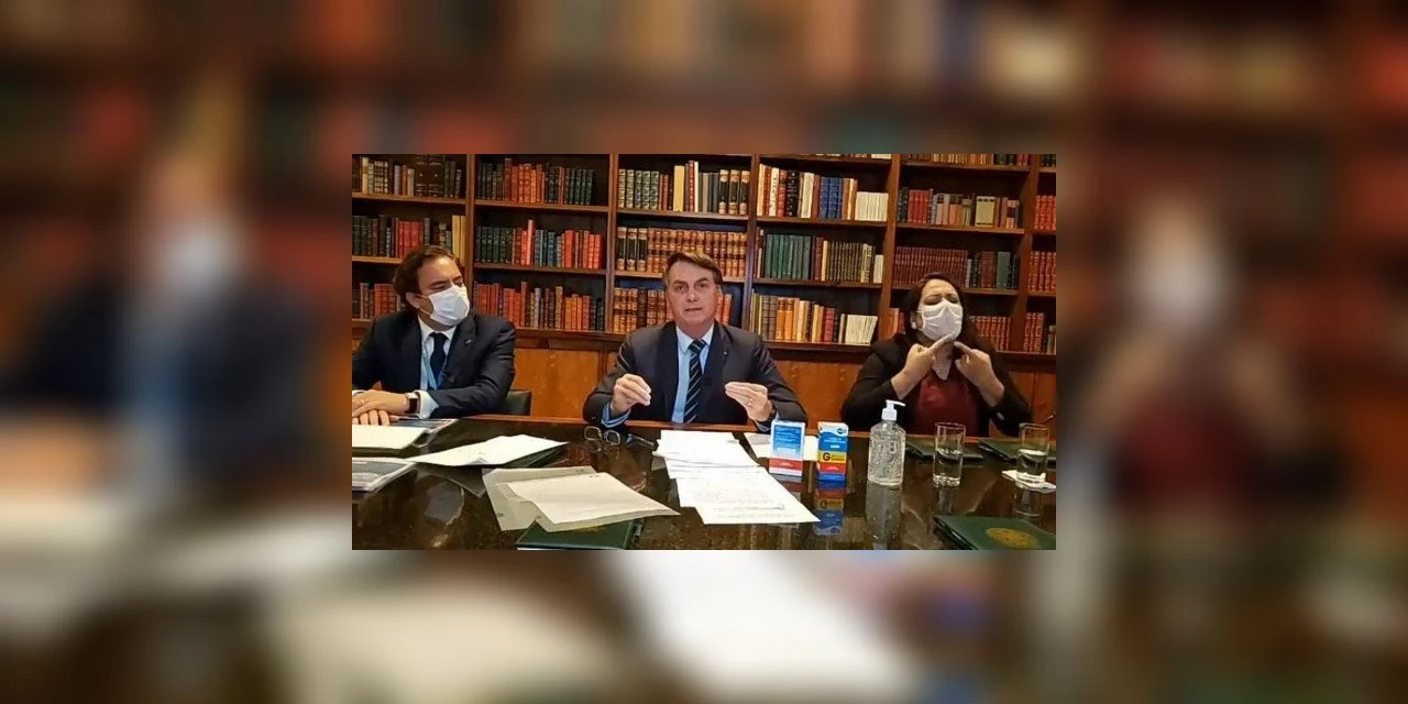 No vídeo, Pedro Guimarães e a intérprete de libras de Bolsonaro, Elizângela Castelo Branco, estavam de máscaras cirúrgicas.