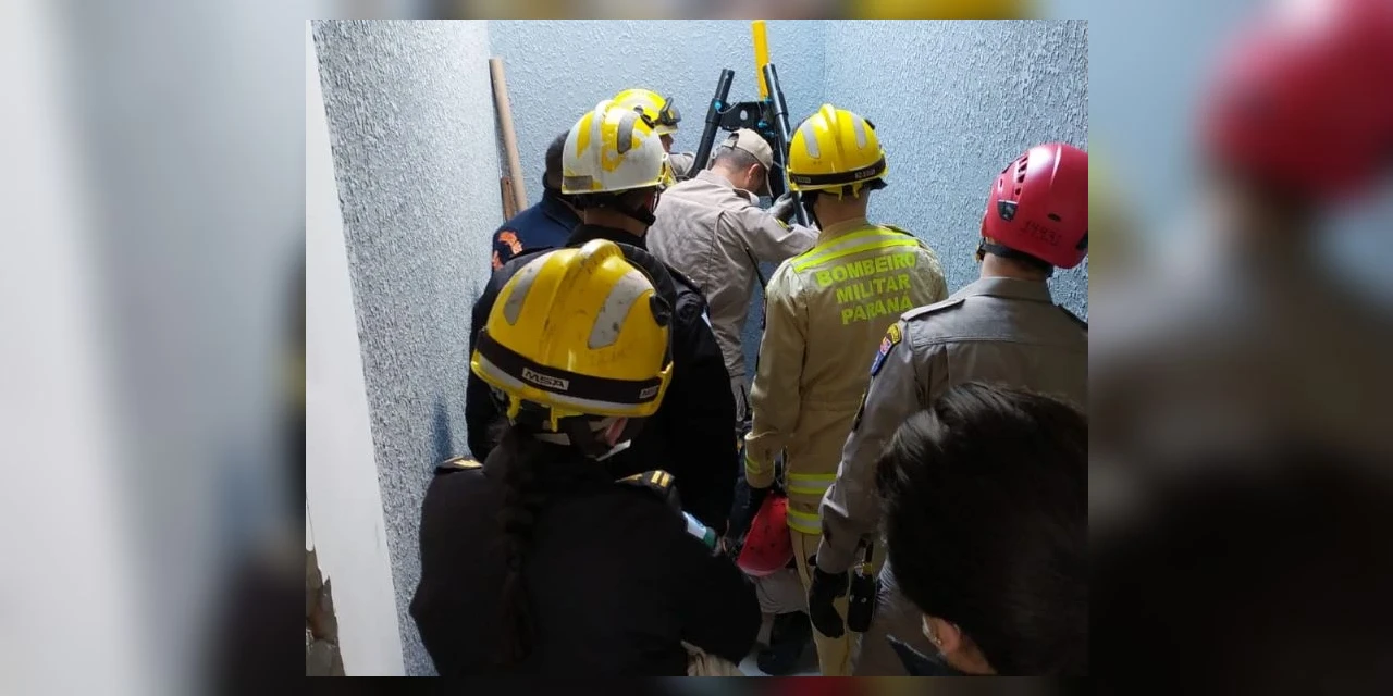 A equipe precisou montar um aparato com um tripé e uma corda para a operação de resgate. Ela foi resgatada com ferimento no braço e foi encaminhada ao Hospital Universitário de Maringá.